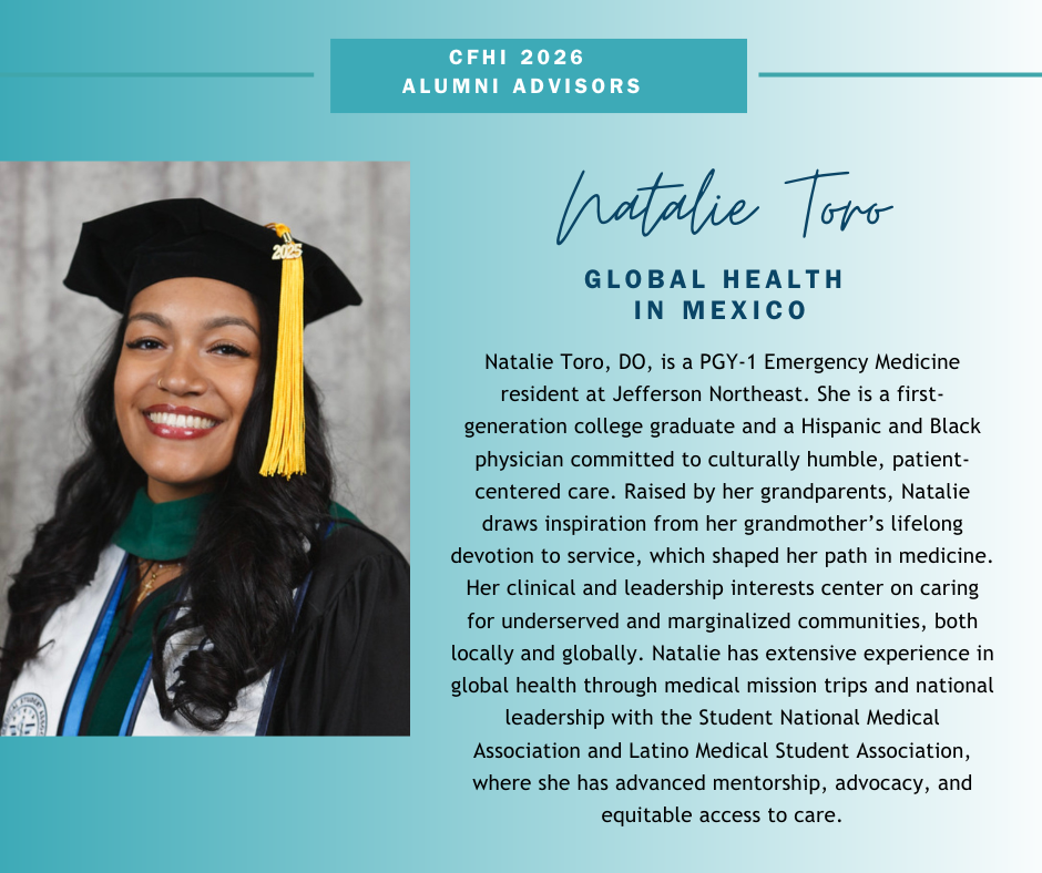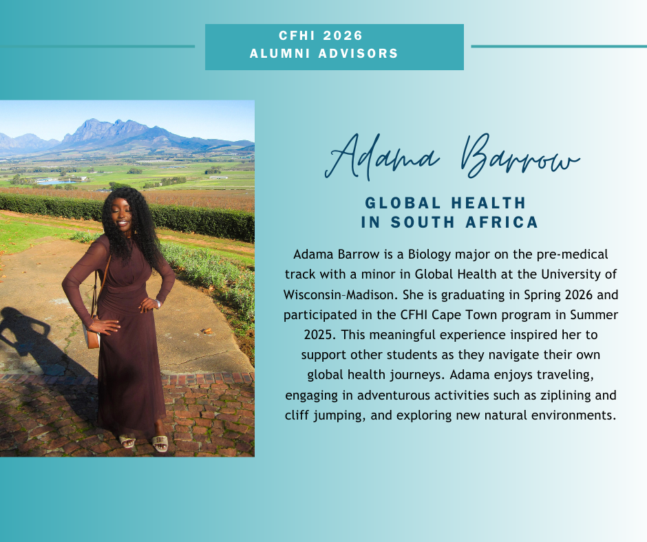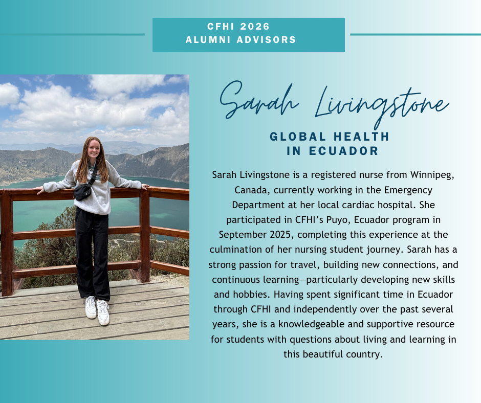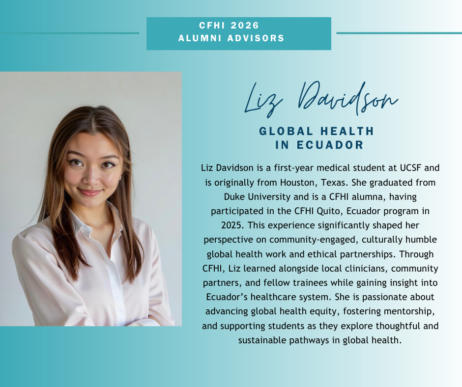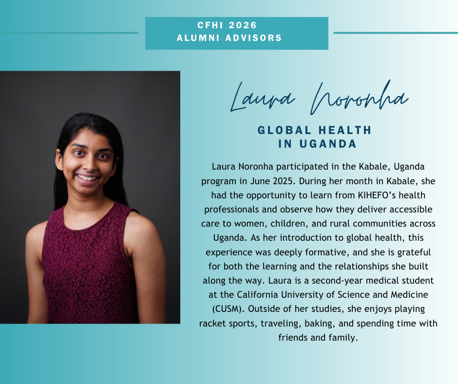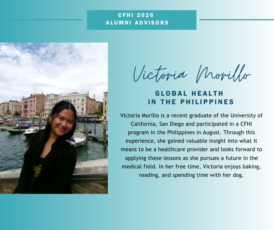 All Alumni Advisors have completed an in-depth training offered by CFHI to ensure that they are well equipped to help CFHI participants derive deep learning, understanding, and reflection from their CFHI global health experience. The Alumni Advisor Program is included in every CFHI program at no additional cost to CFHI participants. All CFHI participants will automatically be added to the Alumni Advisor Program unless they choose to opt-out.